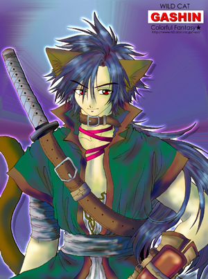 | 天翔羚瀬様に塗っていただいた、牙参です!今回は、色白な牙参です!!肌の色が違うだけでも、こんなに雰囲気が変わるものなんですね〜。銀髪碧眼!とても爽やかです♪紫色の服装も色合いがとてもあっていてキレイです☆背景のデザインも斬新な感じで、かっこいいですね〜vv素敵な塗り絵、有難うございました!! |
