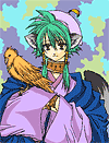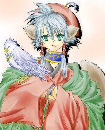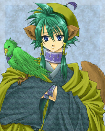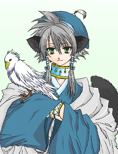 すかい様に塗っていただきました歌清です。元の歌清のカラーを少し明るくした感じですね。水彩絵の具で塗ったようなタッチがとても素敵です!緑色の瞳も綺麗でvv鳥の塗り方も細かくて綺麗ですね〜♪素敵な塗り絵、ありがとうございました!