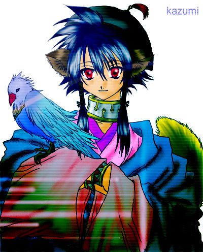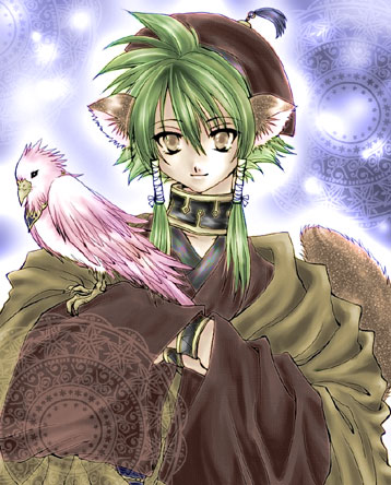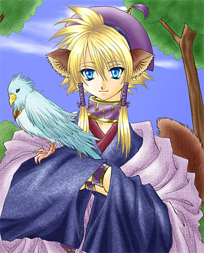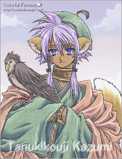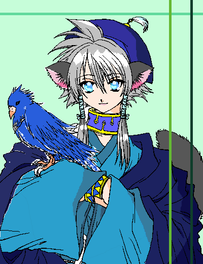 篤耶山様に塗っていただきました歌清です。これはまた、少し落ち着いた色合いで、彼がより一層しっかり者に見えますね。白い耳と尻尾がなんとも可愛いですvそれに対して、青い髪の色がとても鮮やか!背景のキラキラがまた美しいですv
