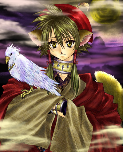| 岬様に塗っていただきました歌清です。赤髪な歌清v意外と似合っていてびっくり☆色合いがすごく綺麗ですね!!バックの月夜にもうっとりします♪雰囲気がすごく出ていますね〜。(^^)鳥さんの色も、不思議な色合いで、珍しい鳥!という感じがします☆帽子などの柄も綺麗vv素敵な塗り絵、ありがとうございました! |