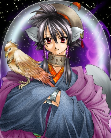 天琉様に塗っていただきました歌清です。服の皺の塗り方や、髪の塗り方など、とても丁寧に細かく塗りこまれていて、素敵です!耳や尻尾の描き方もフサフサ感が出ていて、可愛いですv元は中華風な歌清ですが、和風も彼には似合うなぁと思いましたv素敵な塗り絵、ありがとうございました!