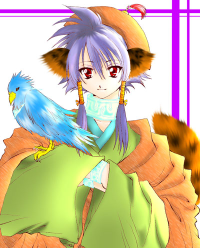 ちょぼ様に塗っていただきました歌清です。まずは一言…アニメ塗りがとても綺麗!!色も鮮やかですが、少し抑え目で、綺麗な色合いです。耳や尻尾の塗り方も凝っていてかわいいですvvバックのデザインも地図を連想させるような感じで良いですね〜v素敵な塗り絵、ありがとうございました!