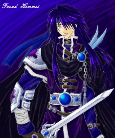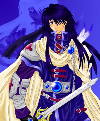 これは、ほぼ彼の設定どおりの色合いですねvv 影のつけ方がとても立体感が出ていて良い感じですv 皺の塗りもしっかりしていて、綺麗です! 背景もまた面白い効果ですね〜☆ |